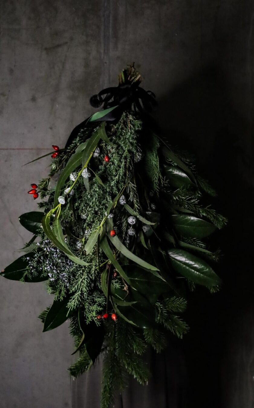 O coroniță luxuriantă realizată manual din ramuri de brad, frunze de magnolie, ienupăr, eucalipt și crenguțe de măceș. Combinând verdele intens cu texturile naturale și parfumurile delicate ale plantelor, această coroniță aduce atmosfera autentică a sărbătorilor în casa ta, fiind perfectă pentru uși, mese sau colțuri speciale.